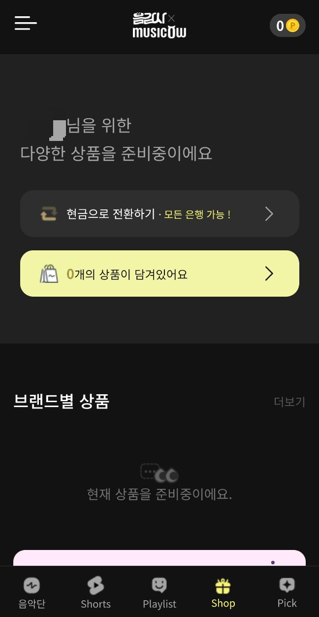 현재 리워드 상품은 준비 중이며, 현금 전환만 가능한 상태다.