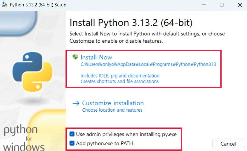 윈도우용 파이썬 3.13.2(최신버젼) 다운로드