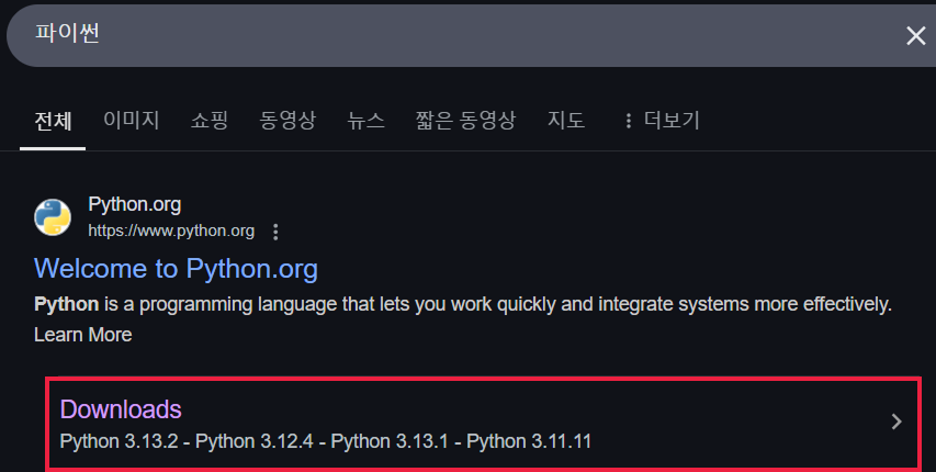 검색창에 파이썬 입력