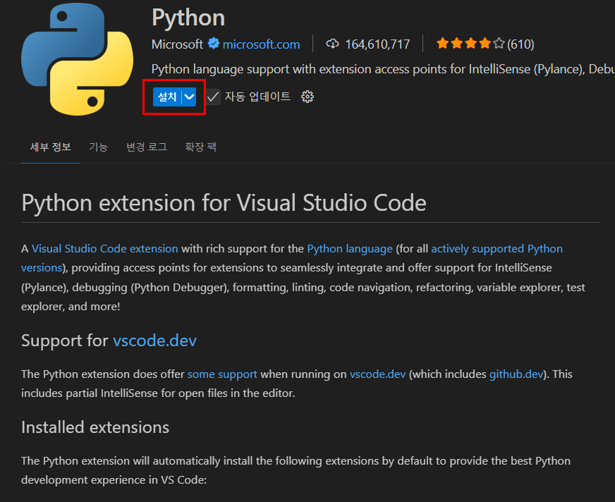 앱 자동화 04 - Visual Studio 확장프로그램 python 설치
