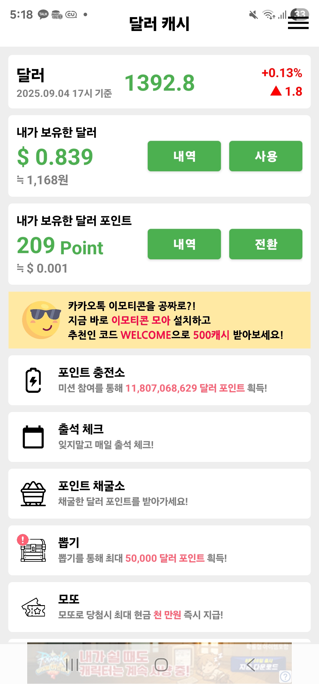 방치형 성장형 앱테크 달러캐시 리뷰 추천코드 : RXMGX7