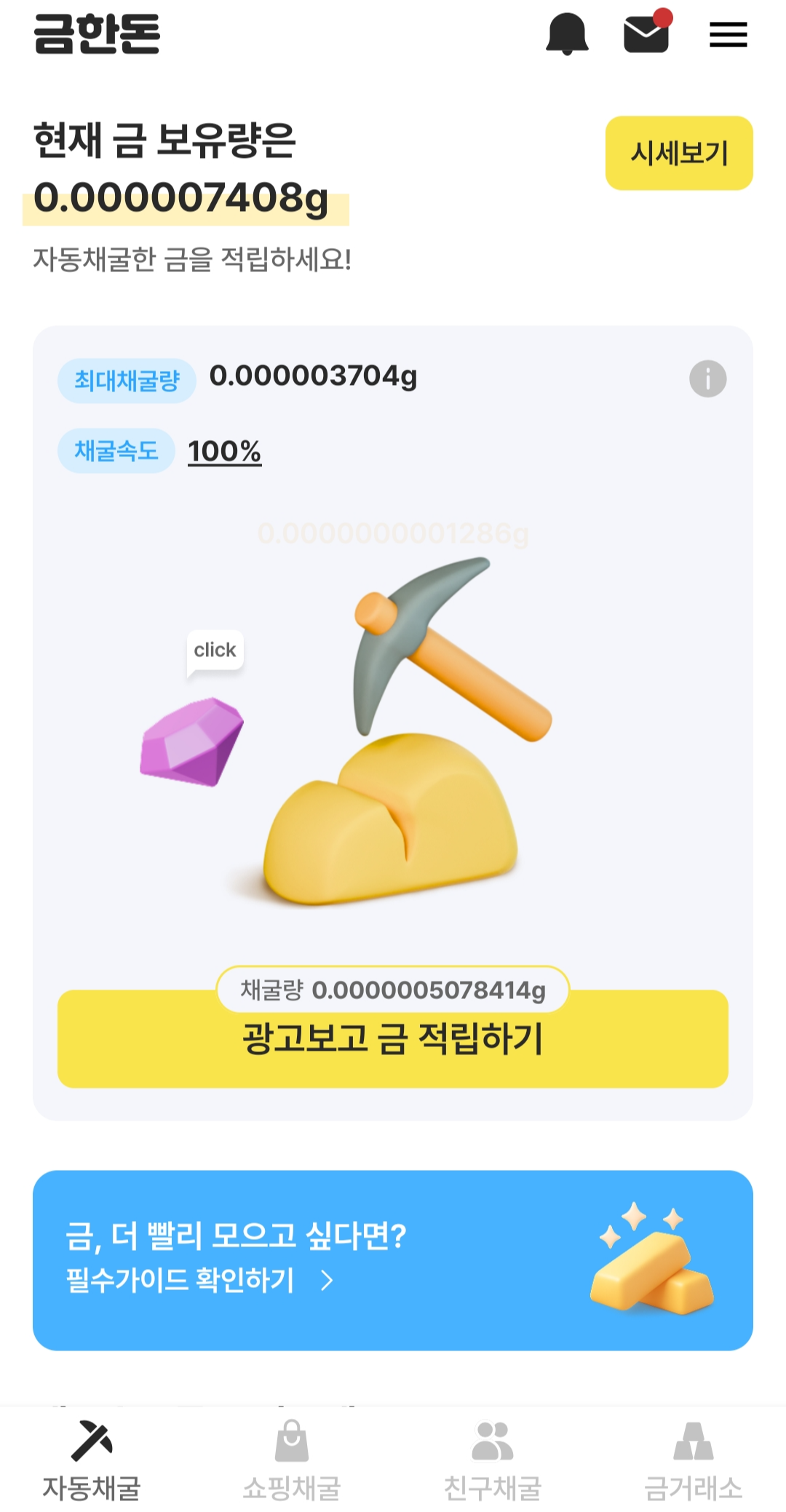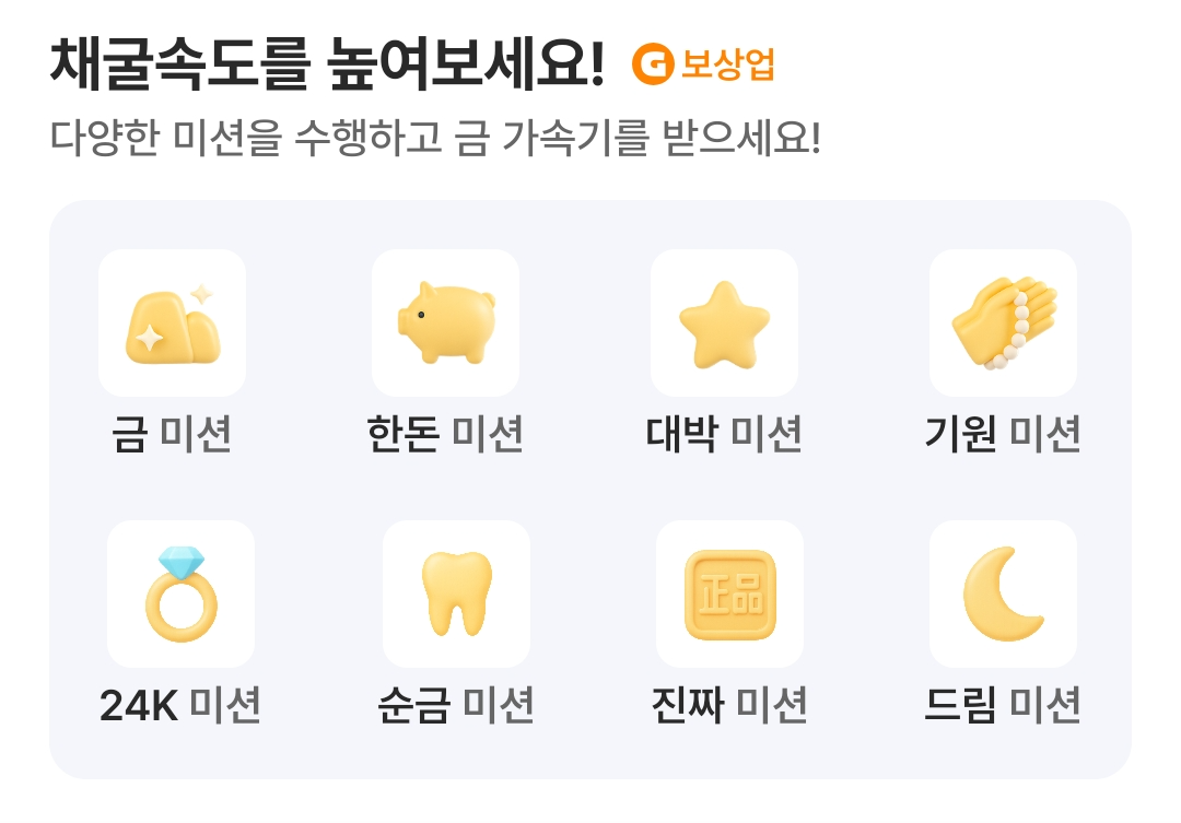 짧게 들어와서 광고 보고 가속기 받아 금을 모으는 방치형 앱테크