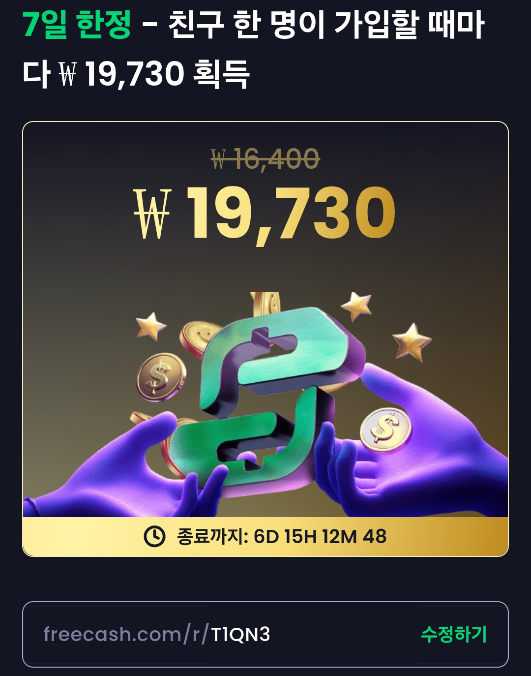 내 추천 링크 : freecash.com/r/TIQN3 (가입해주면 ㄳ 🙏)